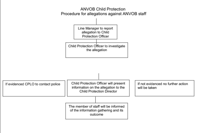- ANVOB takes seriously any complaints made about the conduct of staff in respect of their contact with children and young people. All concerns received by the ANVOB will be investigated fully, and, if necessary, action will be taken against the member of staff via the disciplinary procedure.
